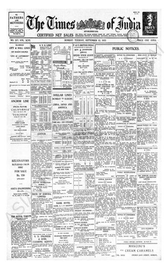 Times of India, September 12, 1933.