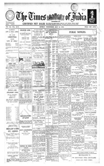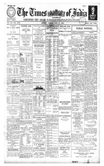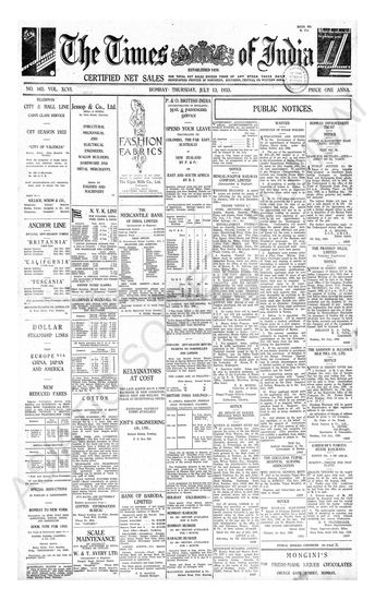 Times of India, July 12, 1933.
