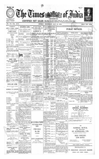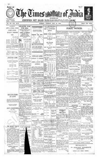 Times of India, July 19, 1933.