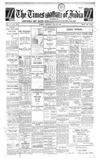 Times of India, July 20, 1933.