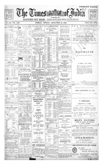 Times of India, September 23, 1929.