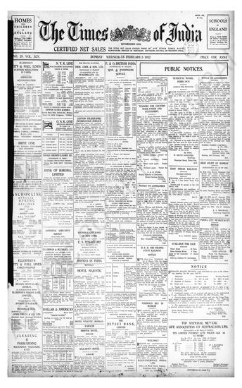 Times of India, February 03, 1932.