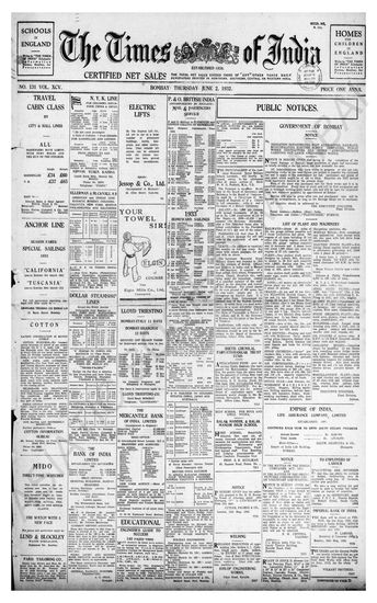 Times of India, June 02, 1932.