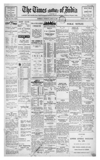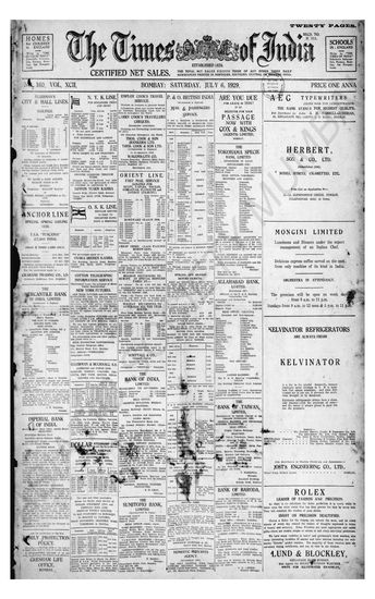 Times of India, July 06, 1929.
