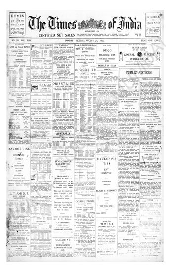 Times of India, August 22, 1931.