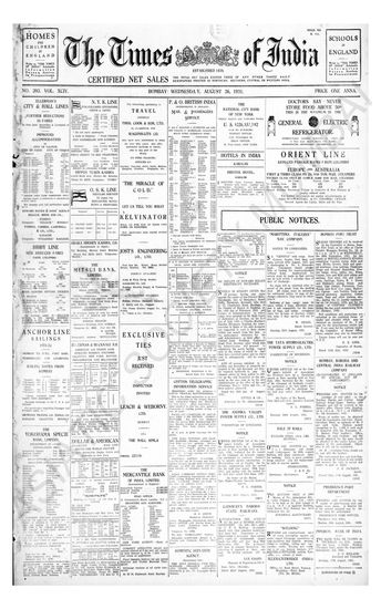 Times of India, August 26, 1931.