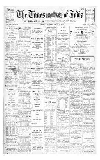 Times of India, August 27, 1931.
