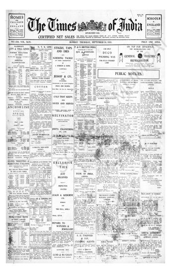 Times of India, September 10, 1931.