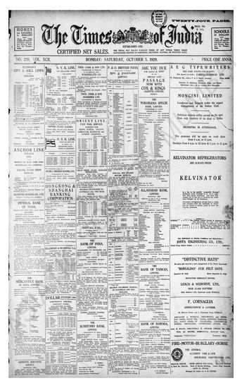 Times of India, October 05, 1929.