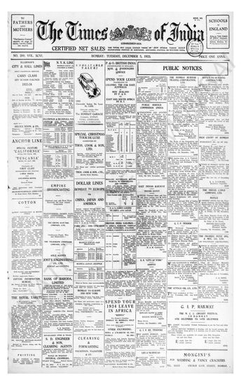 Times of India, December 05, 1933.