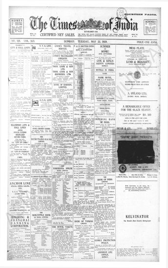 Times of India, May 22, 1928.