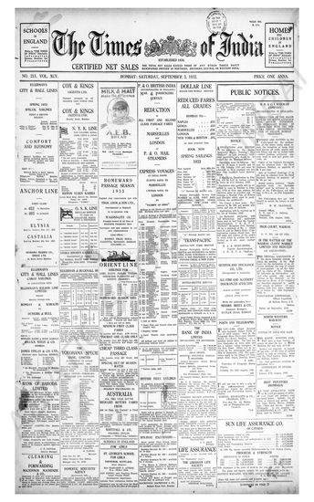 Times of India, September 03, 1932.