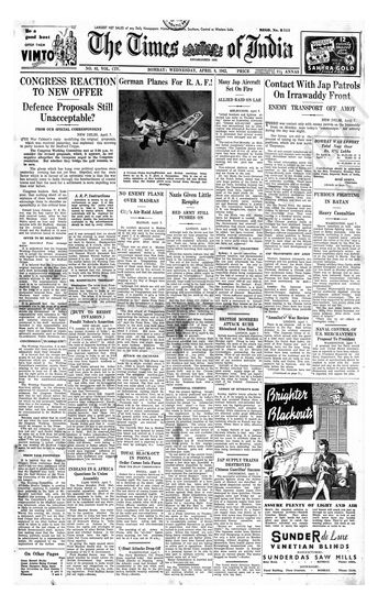 Times of India, April 08, 1942.
