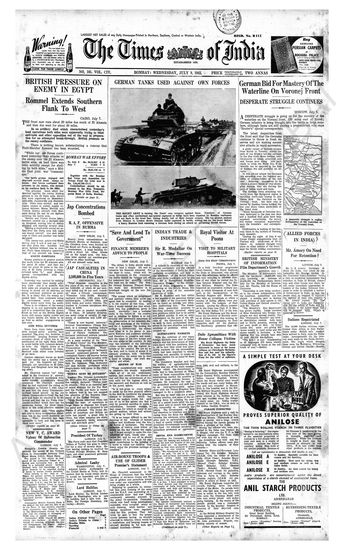 Times of India, July 08, 1942.