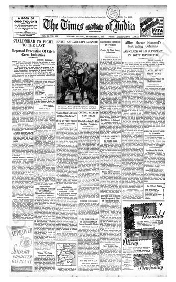 Times of India, September 08, 1942.