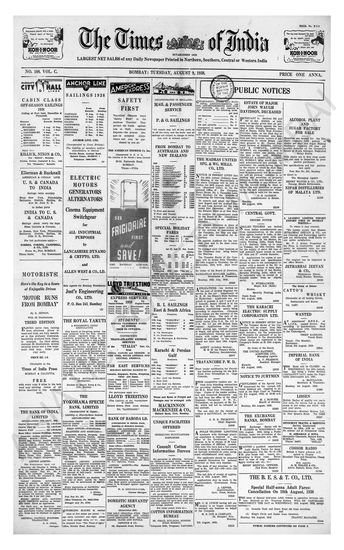 Times of India, August 09, 1938.