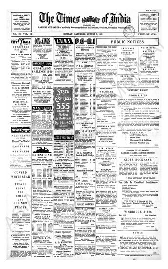 Times of India, August 05, 1939.