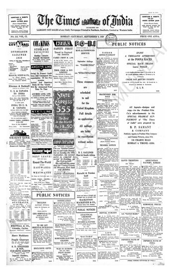 Times of India, September 09, 1939.