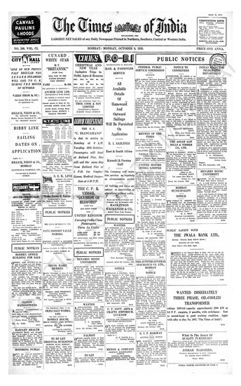 Times of India, October 09, 1939.