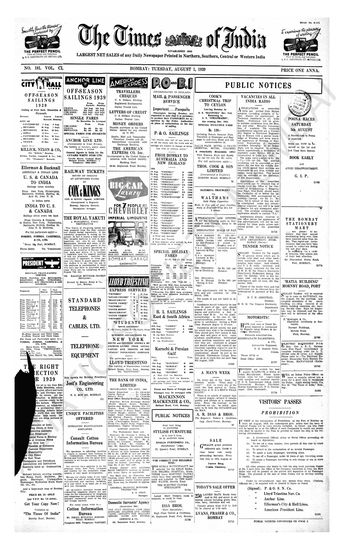 Times of India, August 01, 1939.