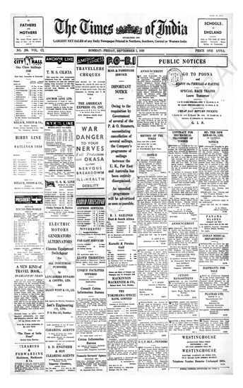 Times of India, September 01, 1939.