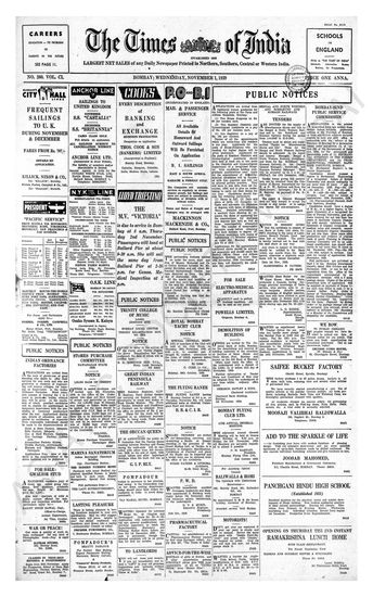 Times of India, November 01, 1939.