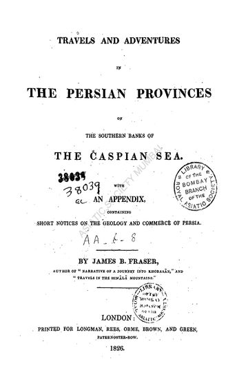 | Subject | : | Travel; Iran; Manners and customs; Fraser, James Baill.ie, 1783-1856 |