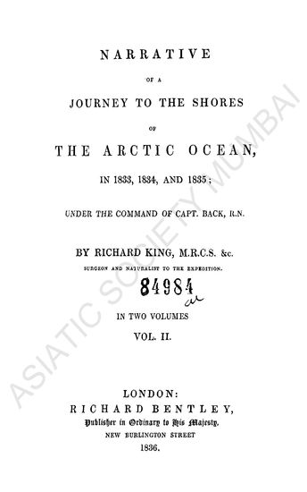 | Subject | : | Arctic Regions; Scientific expeditions; Canada--Canadian Northwest; Travel; Discoveries in geography; Back, George, 1796-1878; Discoveries in geography--British; Ross, John, Sir, 1777-1856 |