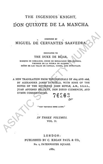 | Subject | : | Cervantes Saavedra; Miguel de, (1547-1616), |