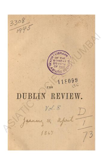 | Subject | : | Catholic Church; Ireland; Civilization; English literature--Irish authors; English periodicals |