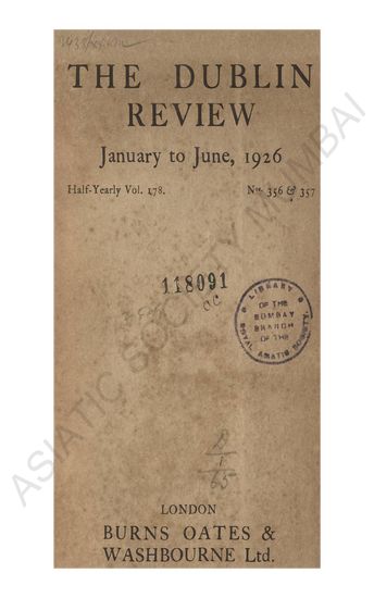 | Subject | : | Catholic Church; Ireland; Civilization; English literature--Irish authors; English periodicals |