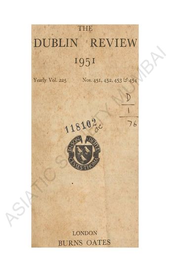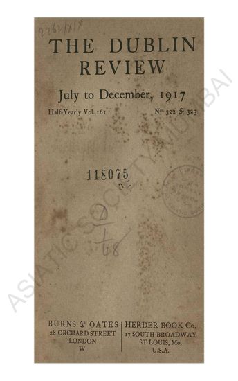 | Subject | : | Catholic Church; Ireland; Civilization; English literature--Irish authors; English periodicals |