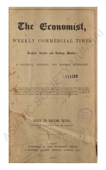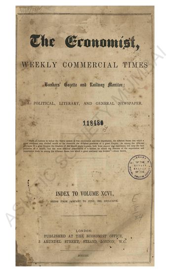 The Economist, Weekly Commercial Times; Bankers' Gazett ...