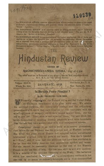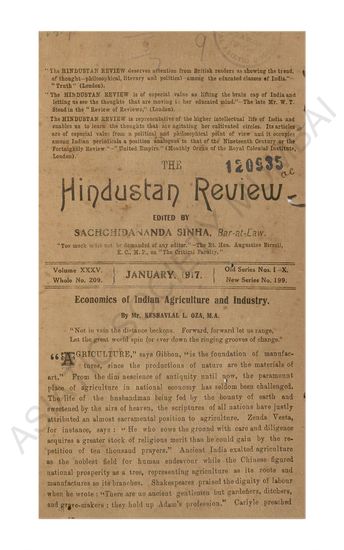 Hindustan Review. Vol XLIII. January - Feb. 1921…