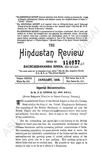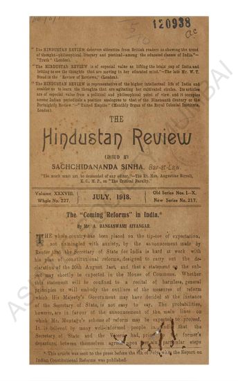 Hindustan Review. Vol XXXVIII. July, 1918…