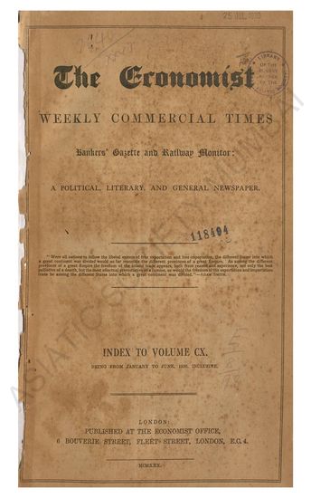 | Publisher | : | The Economist Office, 6 Bouverie Street, Fleet Street, London, E. C. 4 |