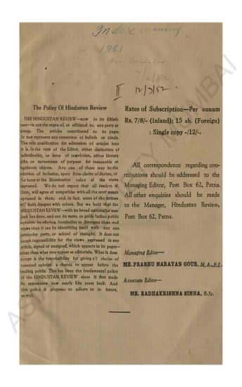 Hindustan Review. Vol LV. January - Feb. 1931…