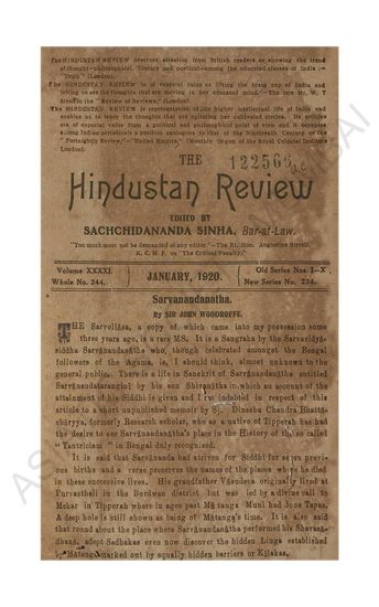 Hindustan Review. Vol XXXXI. January, 1920…