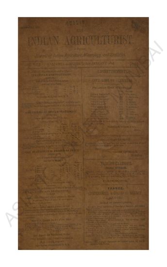 Indian Agriculturist. A Monthly Journal of Indian Agriculture, Mineralogy, and Statistics. Vol XV. January 1890…
