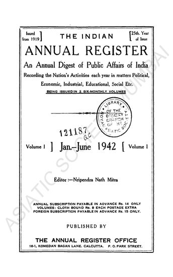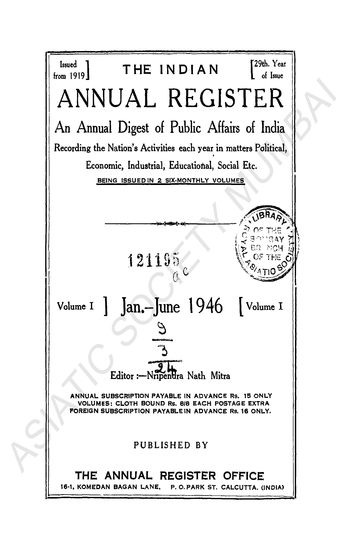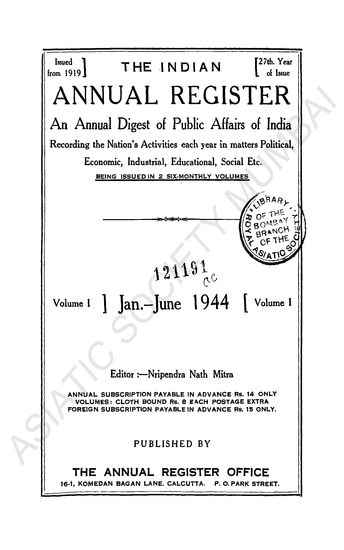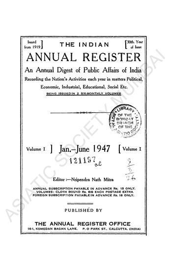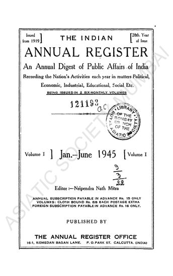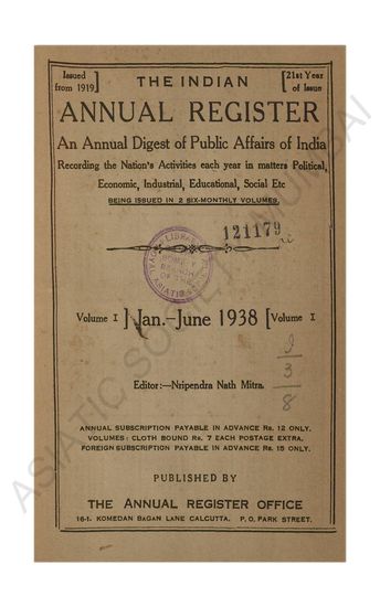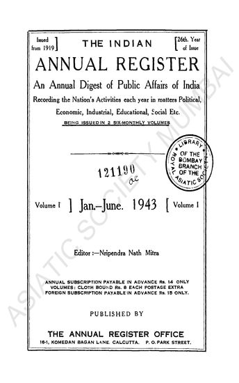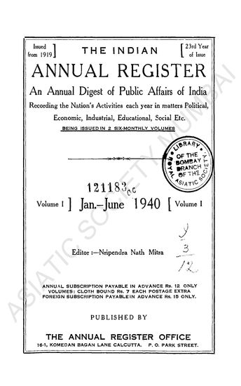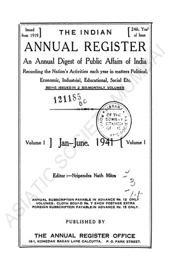 | Publisher | : | The Annual Register Office 16-1 Komedan Bagan Lane Calcutta P. O. Park Street |