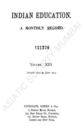 | Publisher | : | Longmas Green and Co., 8, Hornby road, Bombay, 303, Bow Bazar St., Calcutta, and London and New York |