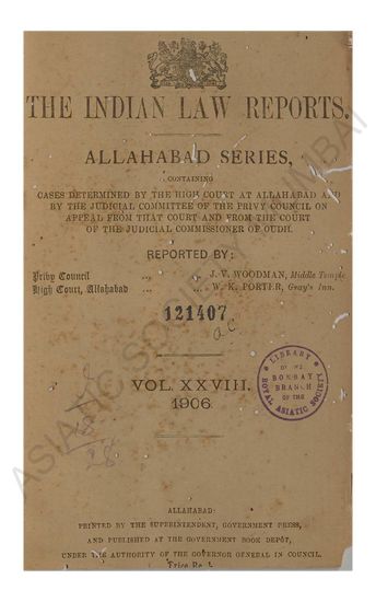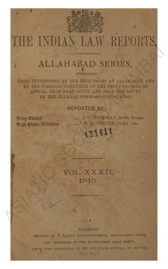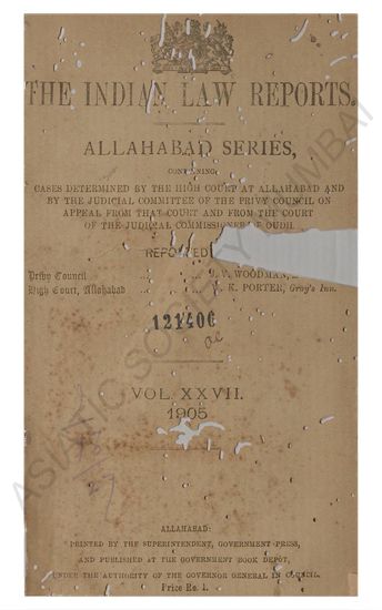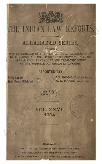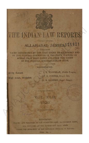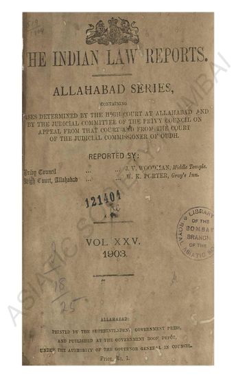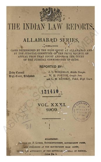 | Subject | : | Law reports, digests, etc India--Uttar Pradesh Law India--Central Provinces India--Allahabad India--NÄgpur Pakistan--Sindh India--Punjab |