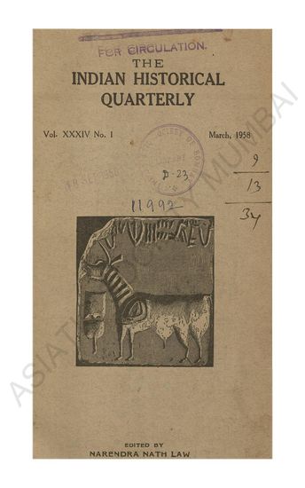 Indian Historical Quarterly. Vol XXXIV. March, 1958…