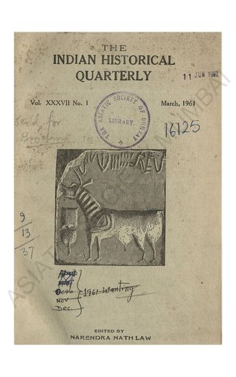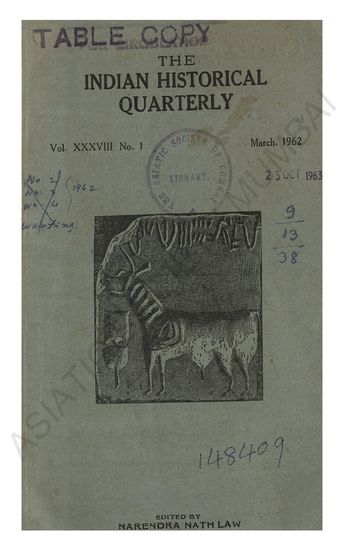 Indian Historical Quarterly. Vol XXXVIII. March, 1962.