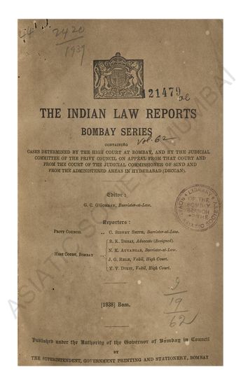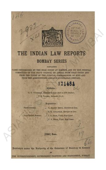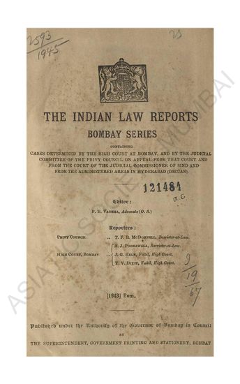 | Subject | : | Law reports, digests, etc India--Maharashtra India India--Mumbai Hyderabad (Deccan)--India |