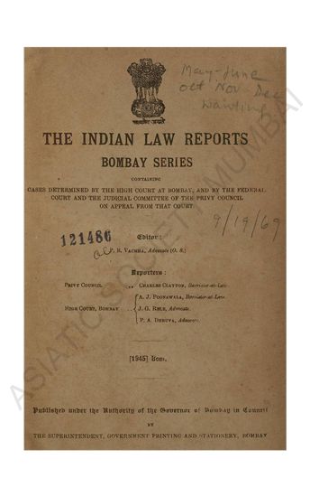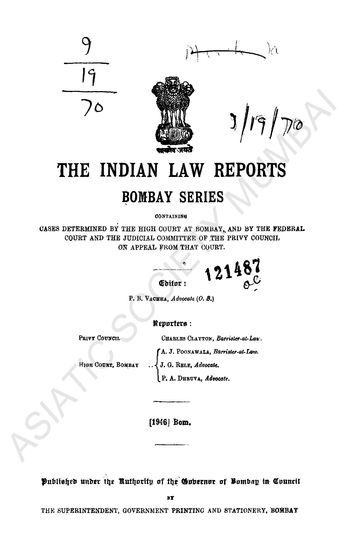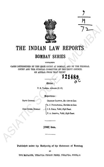 | Subject | : | Law reports, digests, etc India--Maharashtra India India--Mumbai Hyderabad (Deccan)--India |