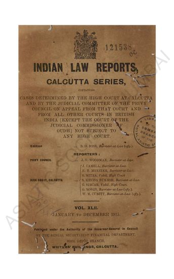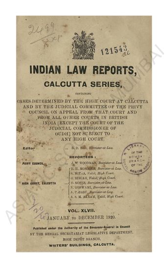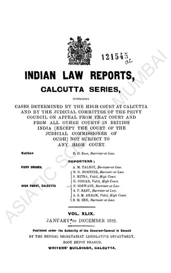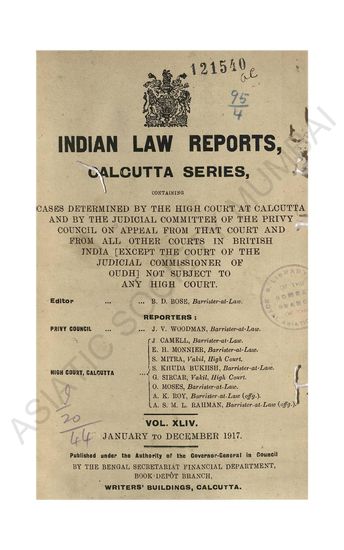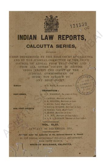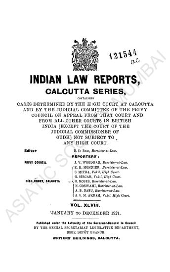 | Subject | : | India Law reports, digests, India--Calcutta |