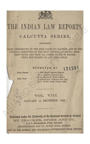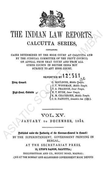 | Subject | : | India Law reports, digests, India--Calcutta |
