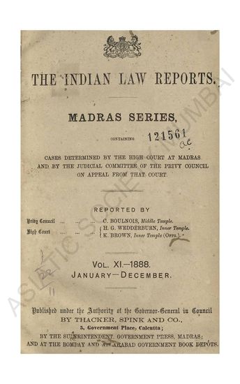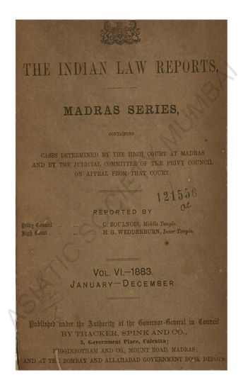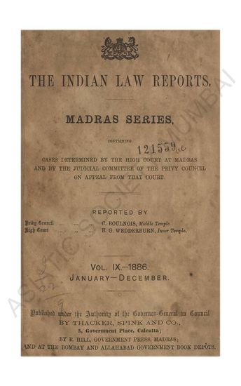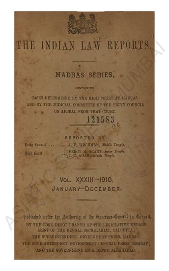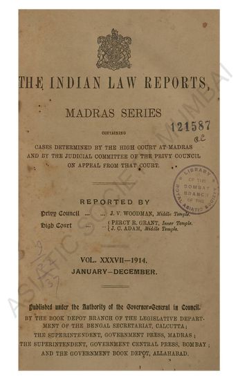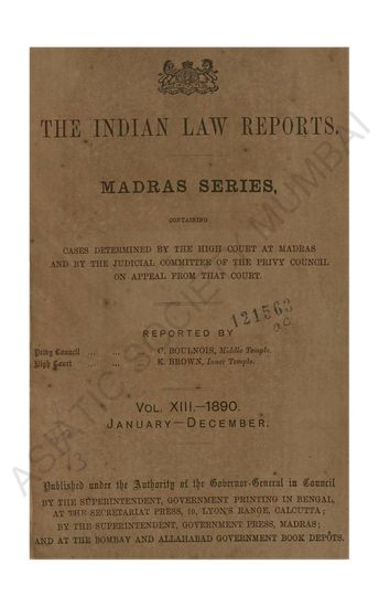 | Subject | : | Law reports, digests, etc India--Chennai India--Tamil Nadu India Law |