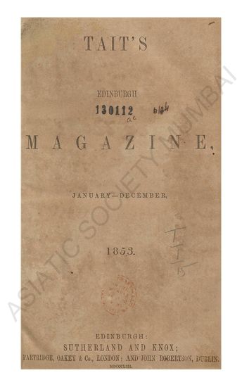 TAIT'S MAGAZINE, JANUARY - DECEMBER, 1853